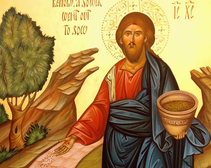 “And he spoke to them at length in parables, saying: “A sower went out to sow. And as he sowed, some seed fell on the path, and birds came and ate it up. Some fell on rocky ground, where it had little soil. It sprang up at once because the soil was not deep, and when the sun rose it was scorched, and it withered for lack of roots. Some seed fell among thorns, and the thorns grew up and choked it. But some seed fell on rich soil, and produced fruit, a hundred or sixty or thirtyfold. Whoever has ears ought to hear.” Matthew 13:3-9