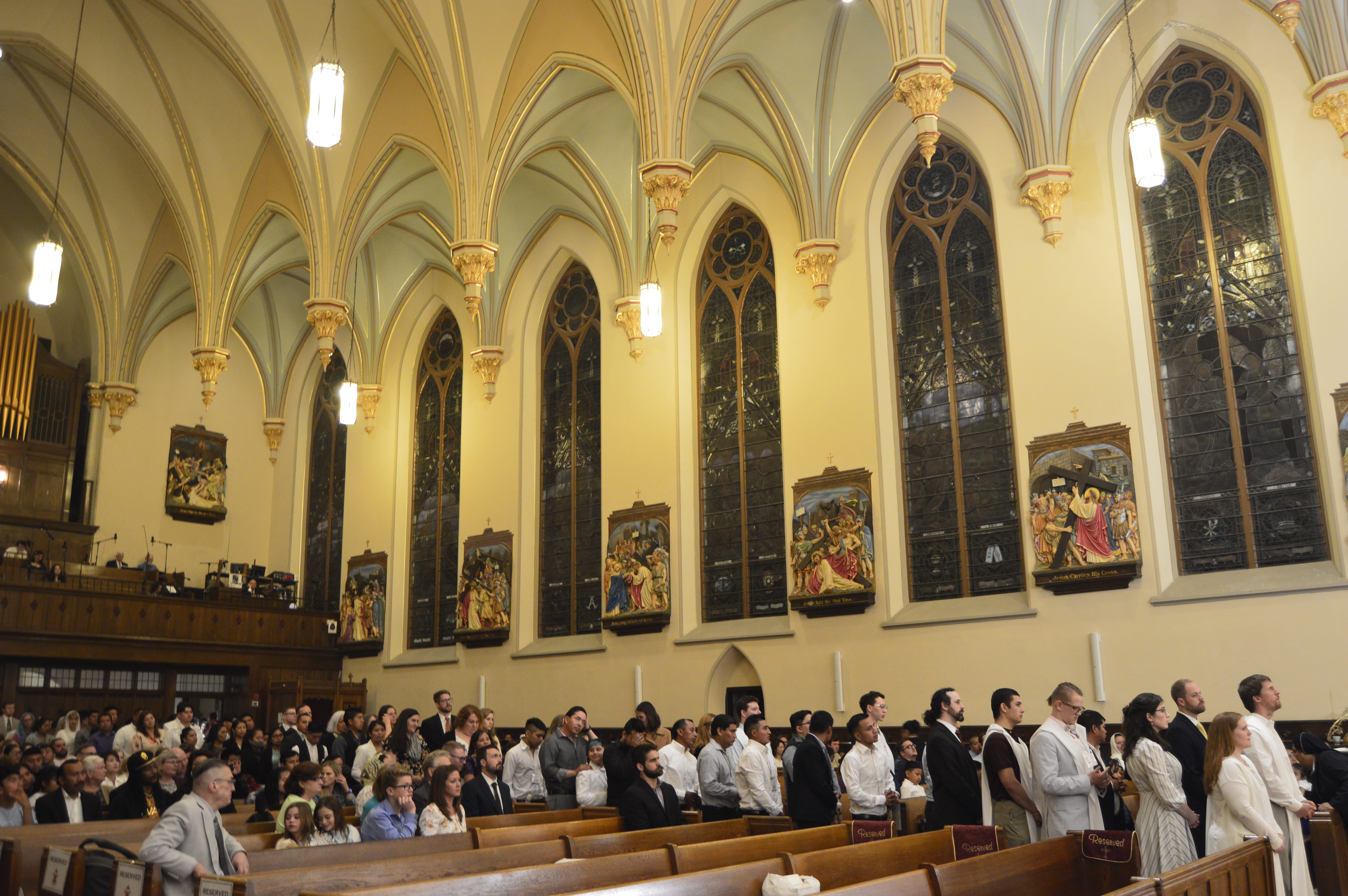 The day for Easter Vigil came. I found myself with the jitters similar to the ones that I had before Nick and I got married. I find that super appropriate. We were going to be dressed in white when we were baptized and confirmed, as a Bride ready to marry her husband. We had had the year to eagerly wait in anticipation for the day when we were able to be in full communion, and it was finally about to happen. The night felt like a dream overall. We started off with a fire outside and moved into our Basilica, where all the lights were off and the only light that was being given was from the candles that we all had, which we all lit from one another’s candle.