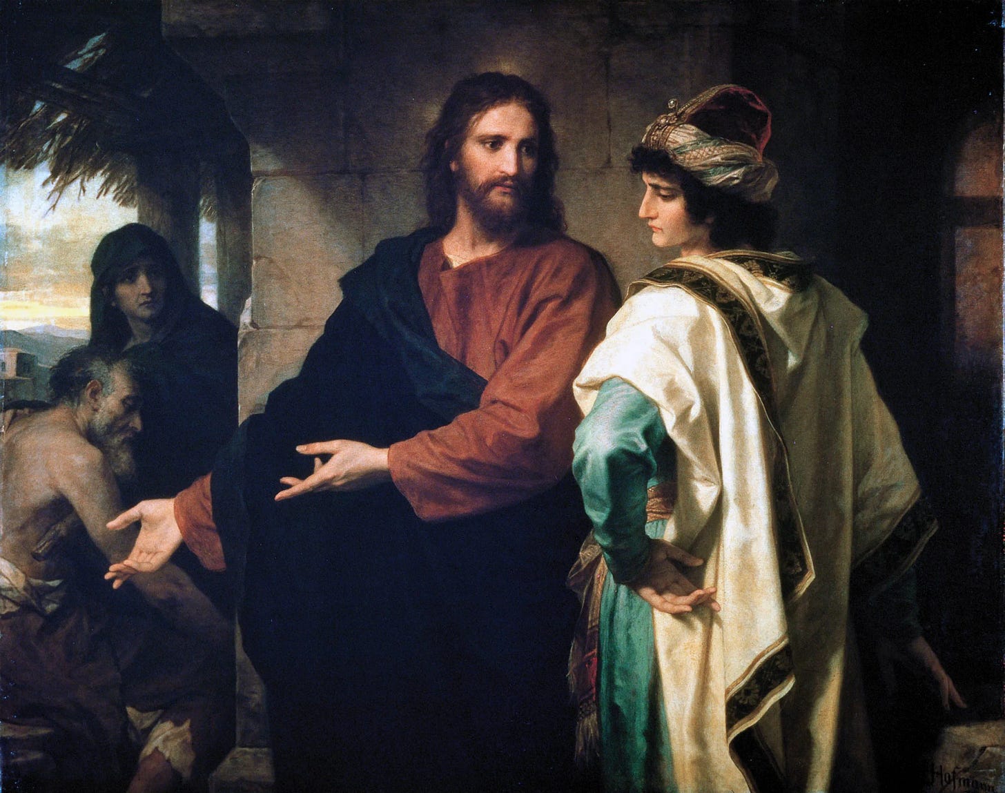 First, Christ is reminding all of us that all works merely from ourselves alone cannot merit the kingdom of God. Jesus is trying to establish the idea here that there is an actual source of all goodness—that goodness itself, is of and from God. So, when we indeed are helping the poor or sick with our alms and our time, we are cooperating with and participating in the good grace of God and meriting only through the merits of Christ, our risen Lord. This rich young man was indeed lucky to have the Son of Man Himself show him the way to eternal life, and He does so in two ways. Certainly, Christ wants us all to keep the commandments, which are basically the embodiment of the natural law, which has its ends in the eternal, each law considering the internal virtue of oneself in relation to others, all falling under Christs command to “Love thy neighbor as thyself.” Following these commandments of Christ is His first invitation to the rich man.