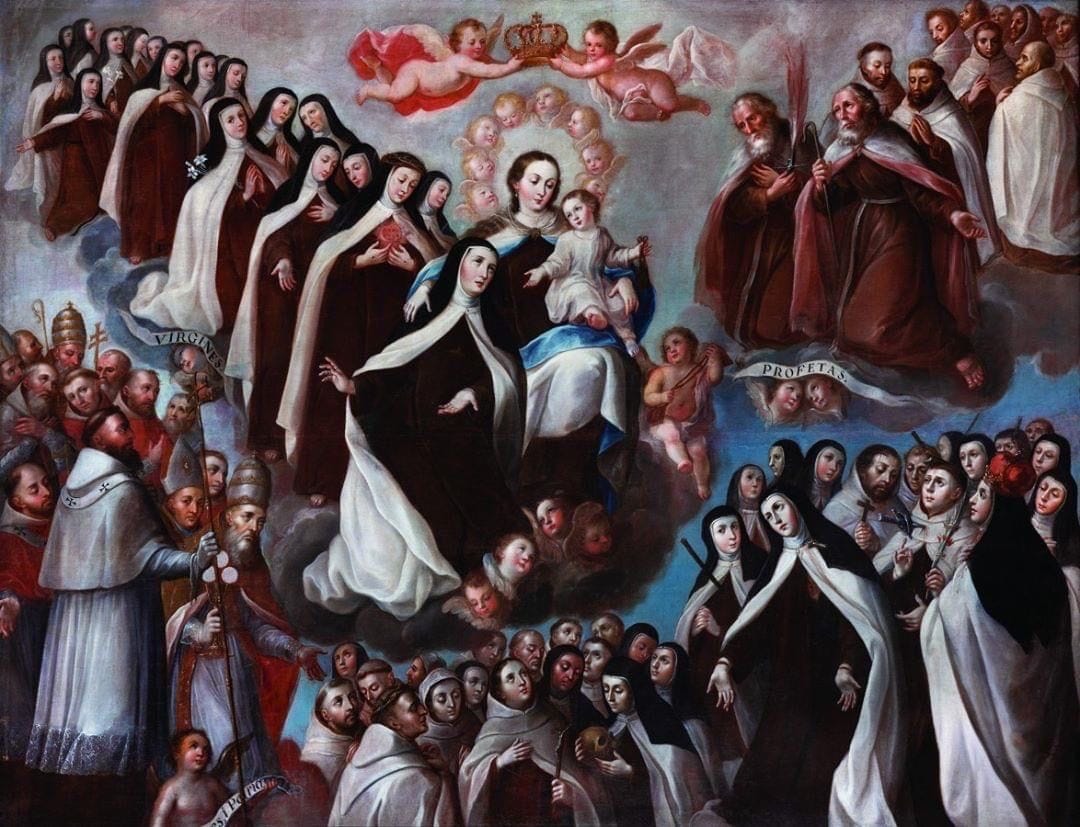 Active Participation in the Communion of Saints. We’ve heard the plea for “active participation” in Mass,1 and I think it can be appropriately used here. As a Discalced Carmelite, I know Thérèse. I know John of the Cross and Teresa. They are great saints and doctors of the Church to be sure, but as my discalced Carmelite brothers and sisters, I get to know them — really know them — on a first name basis. I have spent time reading their personal writings and primary works, and the reliable, credible, orthodox commentary of Catholic thinkers, so that I am knowledgeable of their breadth of thought, but I have spent time with Thérèse, John and Teresa in prayer — I touch on their depth of spirit. They are a part of my daily life and are responsible for shaping my life and the lives of my family because the sense of who they are impacts my love and practice as a wife, mother, friend, and ultimately, Daughter of the Church and Daughter of the Eternal Father. It is also understood that by taking vows into the Order of Discalced Carmelites as a secular (lay or 3rd Order), I participate in the merits, graces, sacrifices, prayers and blessings of the entire Order — including those gained and offered by the Carmelite Saints in heaven, for all time — going back to Elijah and St. John the Baptist. The same can be said of every Order since their Founding: Augustinians, Dominicans, Franciscans, Benedictines, etc.