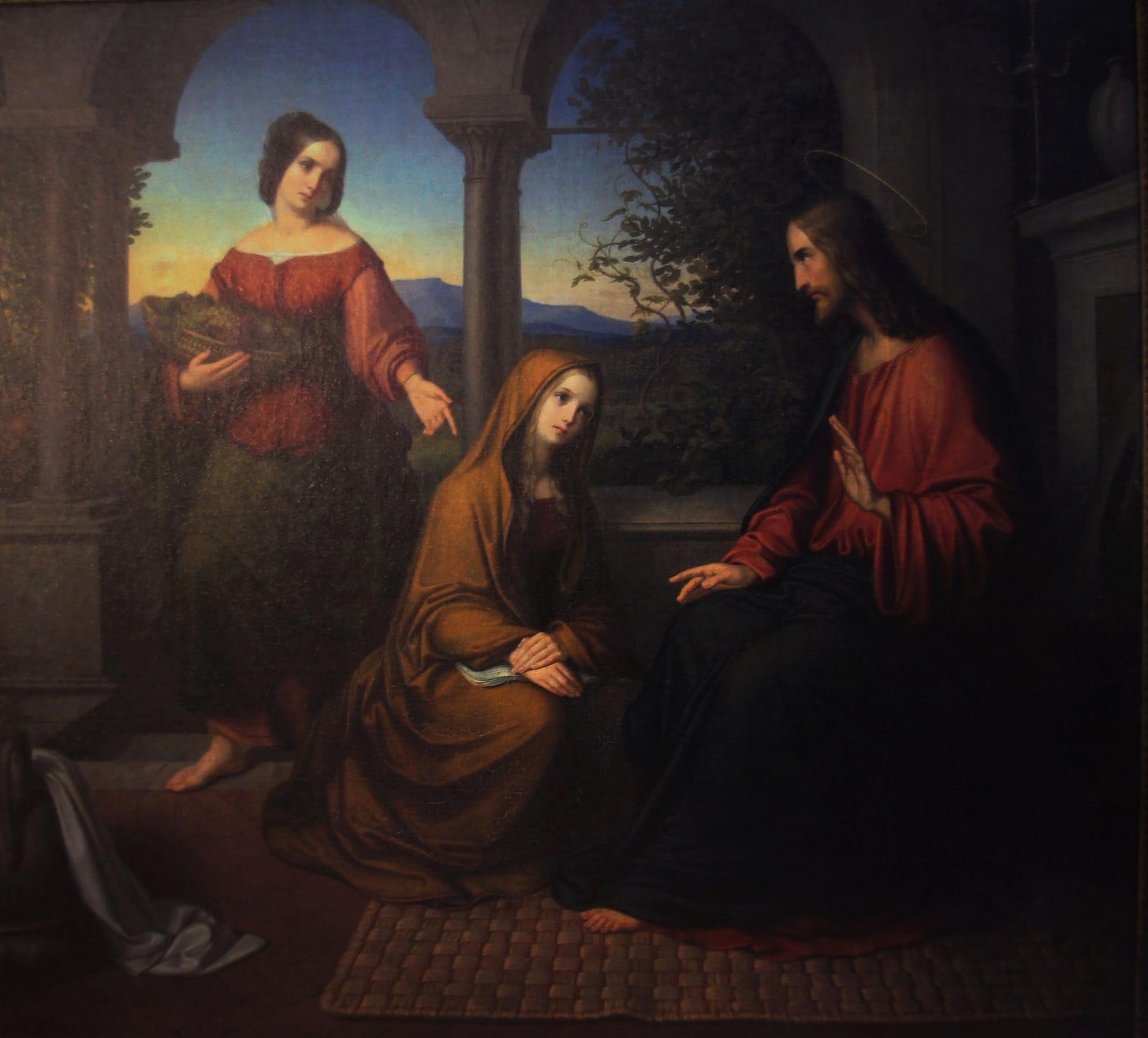 Our Lord gives new insights into this question with the example of Martha and Mary. In many ways, Mary could seem to be selfish, just sitting at Christ’s feet while her sister does her duty as a considerate woman and a hospitable host in serving her guest. Indeed, Martha wasn’t wrong in her actions – but she was wrong in the order of her love.
